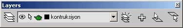 Layer araç grubunu aktif edebilmek için main tool bar üzerinde boş bir yere tıklayarak "Layer" seçeneğini işaretliyoruz ve karşımıza bir araç çubuğu çıkıyor. Bu araç çubuğunu istersek layers yazan mavi bölümünden tutup Main Toolbar üzerine sürükleyerek üste sabitleyebilriz.