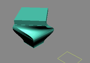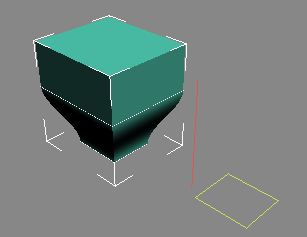 Kutu nesnesi oluşturan line ve rectangle objelerinde yapılacak her değişiklikten etkilenecektir. Loft exturude ve bevel ve bevel profile değiştiricilerine çok benzer. Aralarındaki en büyük fark oluşan nesne üzerindeki kontrollerin çok daha fazla olmasıdır. Yukarıdaki şelikde kutu nesnesinin z eksenine göre minimum konumunda bir shape görürülmektedir. Aşağıdaki şekilde loft objesine Subobject konumundayken yapılan küçük bir değişiklik görülmektedir. Nesnenin alt kısmında bulunan shape kopyalanarak (shift+mouse sol tuş ile sürükleyerek) kopyalanmış ve scale edilmiştir. Aynı şekilde Rotate işlemi de desteklenmektedir.